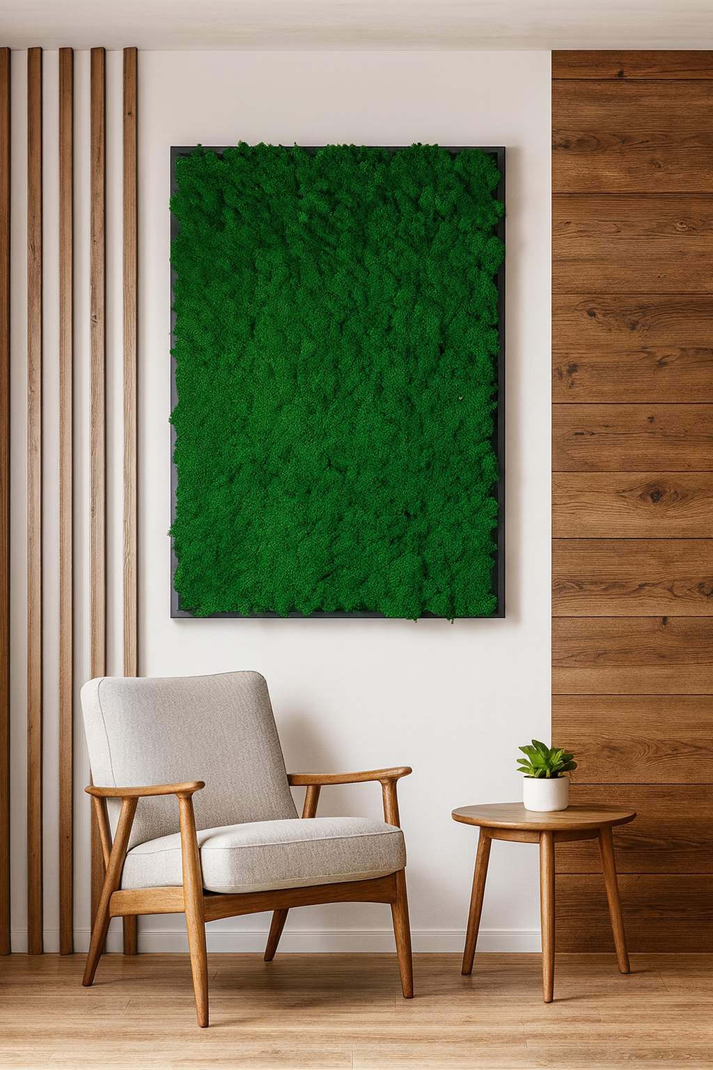 Natürliche Schönheit: Die dichte Textur und die satte Farbe des Mooses schaffen ein harmonisches Design, das eine edle und beruhigende Ausstrahlung bietet.
